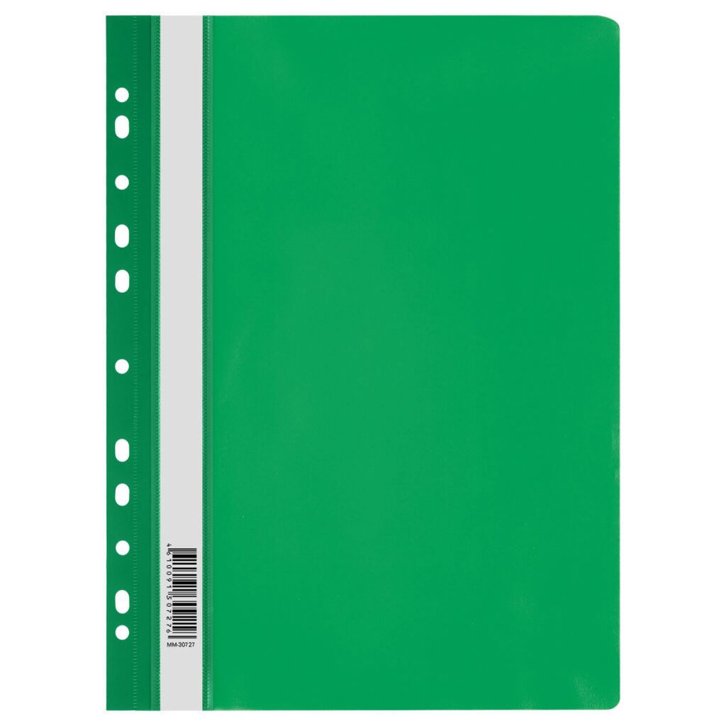 Папка-скоросшиватель пластик. перф. СТАММ А4, 180мкм, зеленая с прозр. верхом