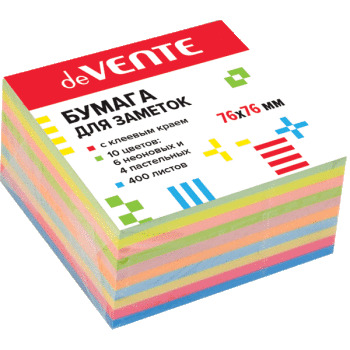 Стикеры “dV” 76×76 мм 6 неоновых и 4 пастастельных цветов (1 блок, 400 листов)