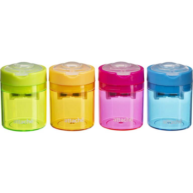 Точилка для карандашей Attache Economy пластиковая с контейнером 2 отверстия цвет ассорти