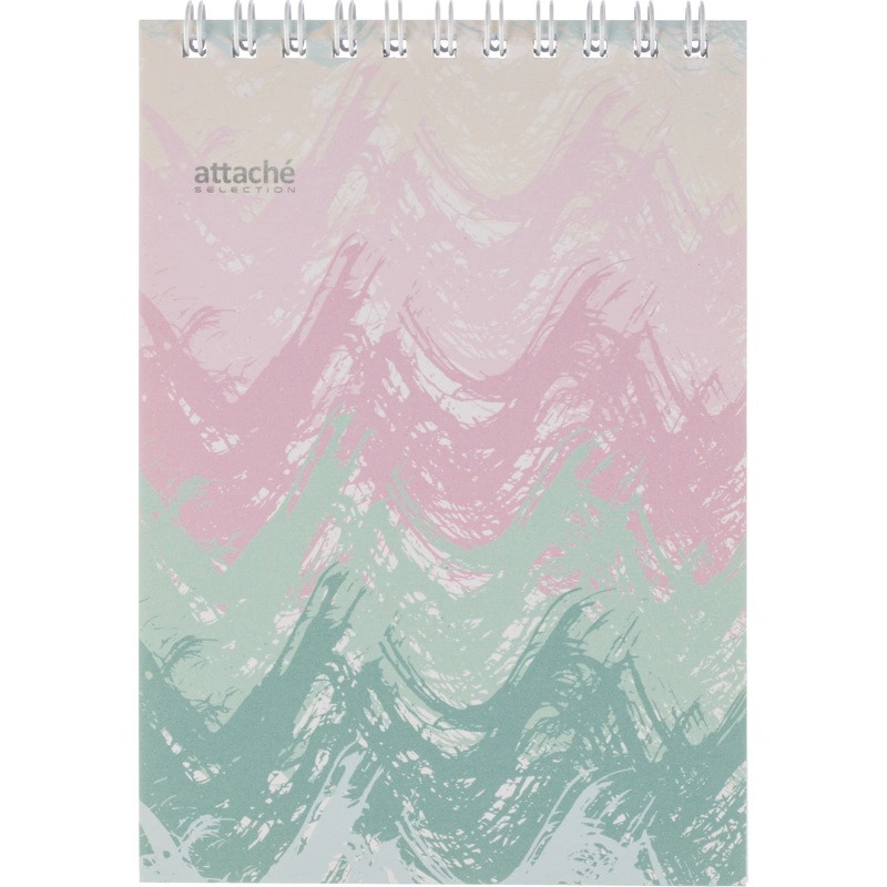 Блокнот Attache Selection Pastel формата A6 на спирали. Обложка блокнота, выполненная из мелованного картона, защищает бумагу от деформации, плотность обложки 230 г/кв.м, в актуальных пастельных цветах, обложка ламинирована матовой пленкой. Блокнот, скрепленный сверху по короткой стороне металлической спиралью, состоит из 60 листов (120 страниц). Плотность блока — 60 г/кв.м. Размер блока: 101×145 мм.