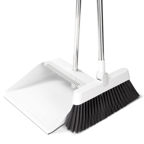 Он включает в себя метлу с уникальной возможностью поворота на 180°, что значительно облегчает уборку под мебелью и в углах помещения. Совок, также входящий в комплект, обладает специальной формой, обеспечивающей плотное прилегание к полу и эффективное удаление даже мелкой пыли. Для легкого удаления волос и других загрязнений предусмотрена зубчатая щетка