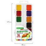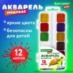 Краски акварельные BRAUBERG KIDS, медовые, 12 цветов, квадратные кюветы, пластиковый пенал
