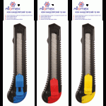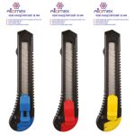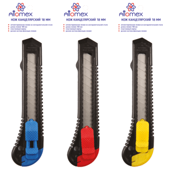 Нож канцелярский “Attomex” 18 мм, пластиковые направляющие, ручная блокировка лезвия, пластиковый блистер, ассорти
