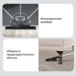 Рукоятка швабры состоит из четырех частей, одна из которых телескопическая, что позволяет регулировать ее длину. Она свободно вращается на 180° вдоль и на 150° поперек основания швабры, что обеспечивает удобство во время уборки под мебелью и в труднодост