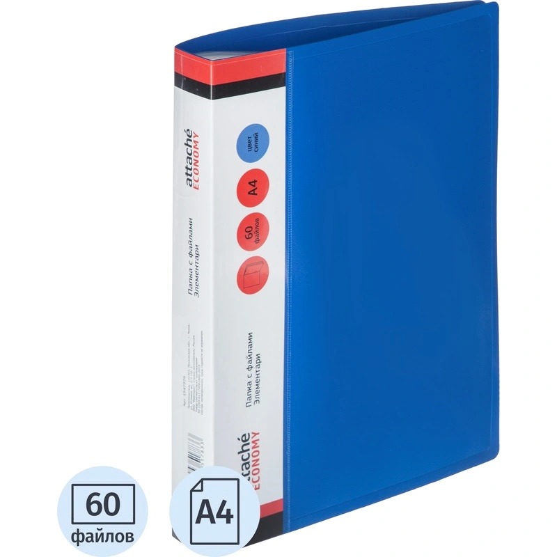 Папка файловая на 60 файлов Attache Economy Элемент А4 40 мм синяя (толщина обложки 0.7 мм)